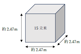 ・15立米はどのくらい ⇒ 一辺の長さが約2.47mの立方体の体積